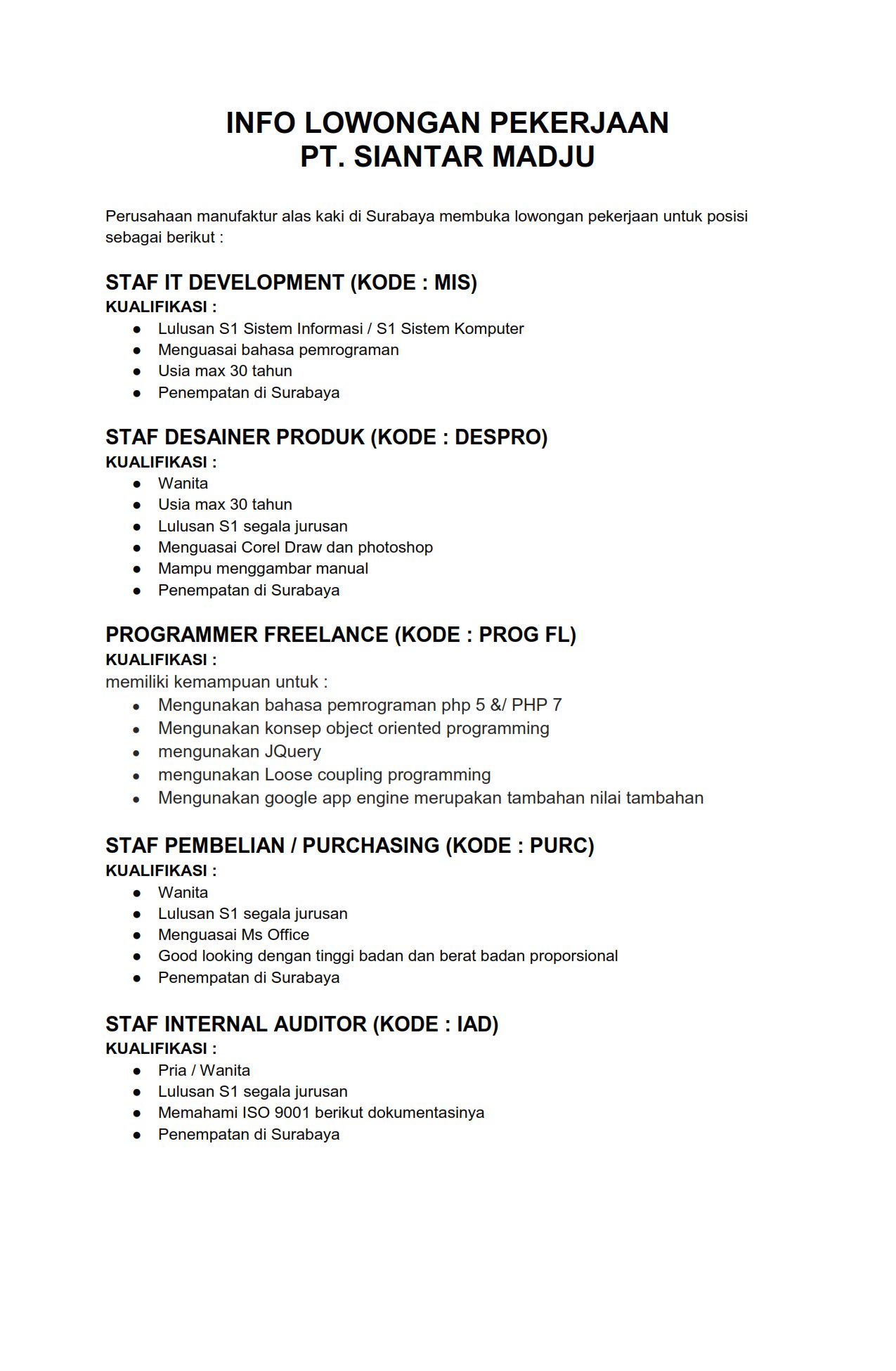 Dengan menggunakan bahan baku berkualitas tinggi manajemen. Siantar Madju membuka kesempatan bagi lulusan D3S1 Segala Jurusan untuk berkarir dan bergabung bersama kami untuk menduduki posisi sebagai berikut. 1814 pengikut di LinkedIn.
